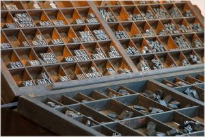 In the early days of printing, each character was represented on an individual block called a sort. Character sorts were selected and placed into composing sticks. Typesetters would select the characters from a case containing the sorts. Capital letters were stored in the back of the tray, as they were less frequently used. Trays when pulled out would be set upright so the capital letter would be on the top side, hence “upper case”. This is the story.